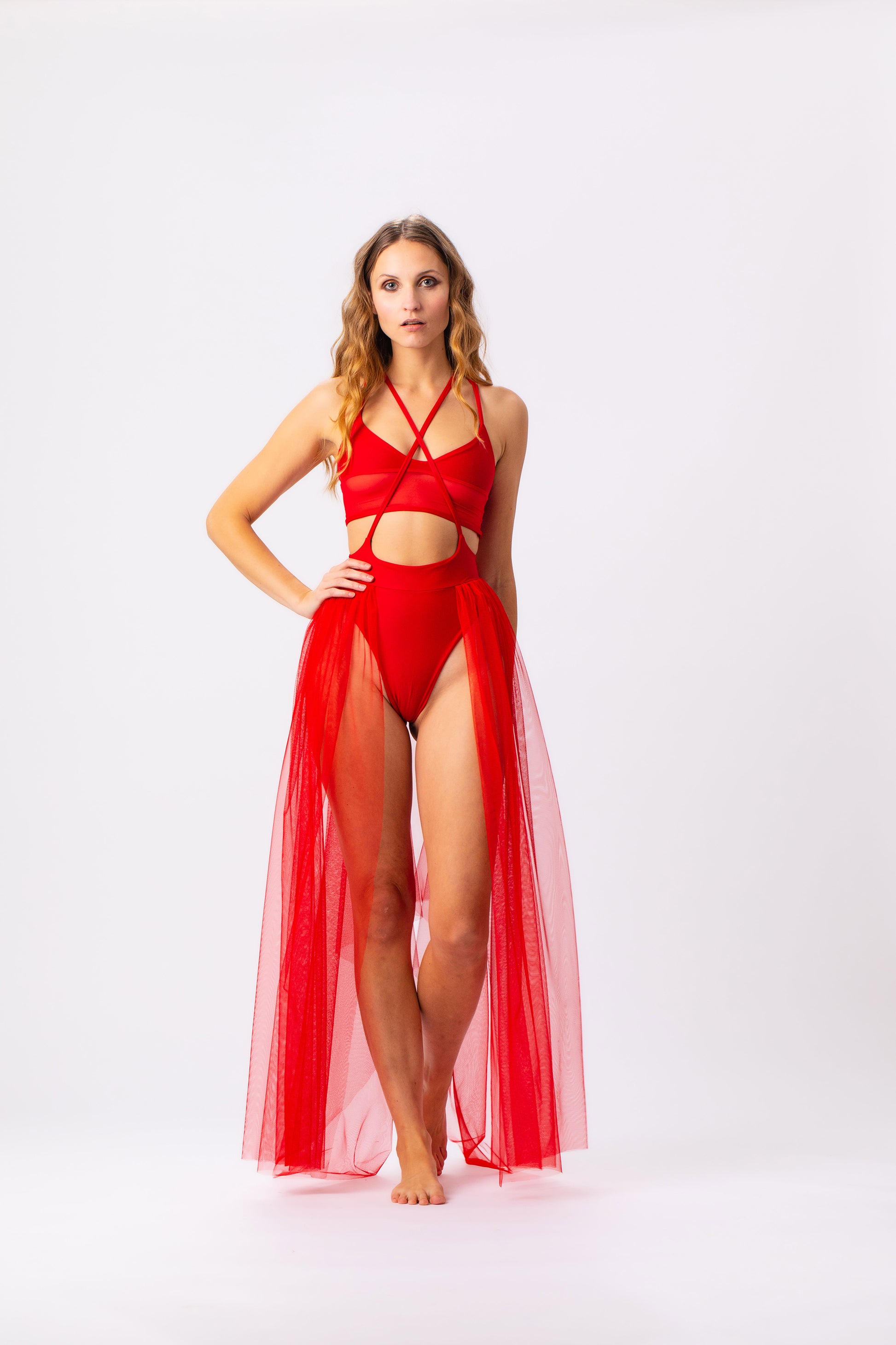 • Dieser Tanga von DRESP mit verstellbaren Trägern und Tüll-Volants ist ein 2 in 1 Partyoutfit. Der weich fallende Stretch-Tüll Rock umspielt verführerisch die Beine.